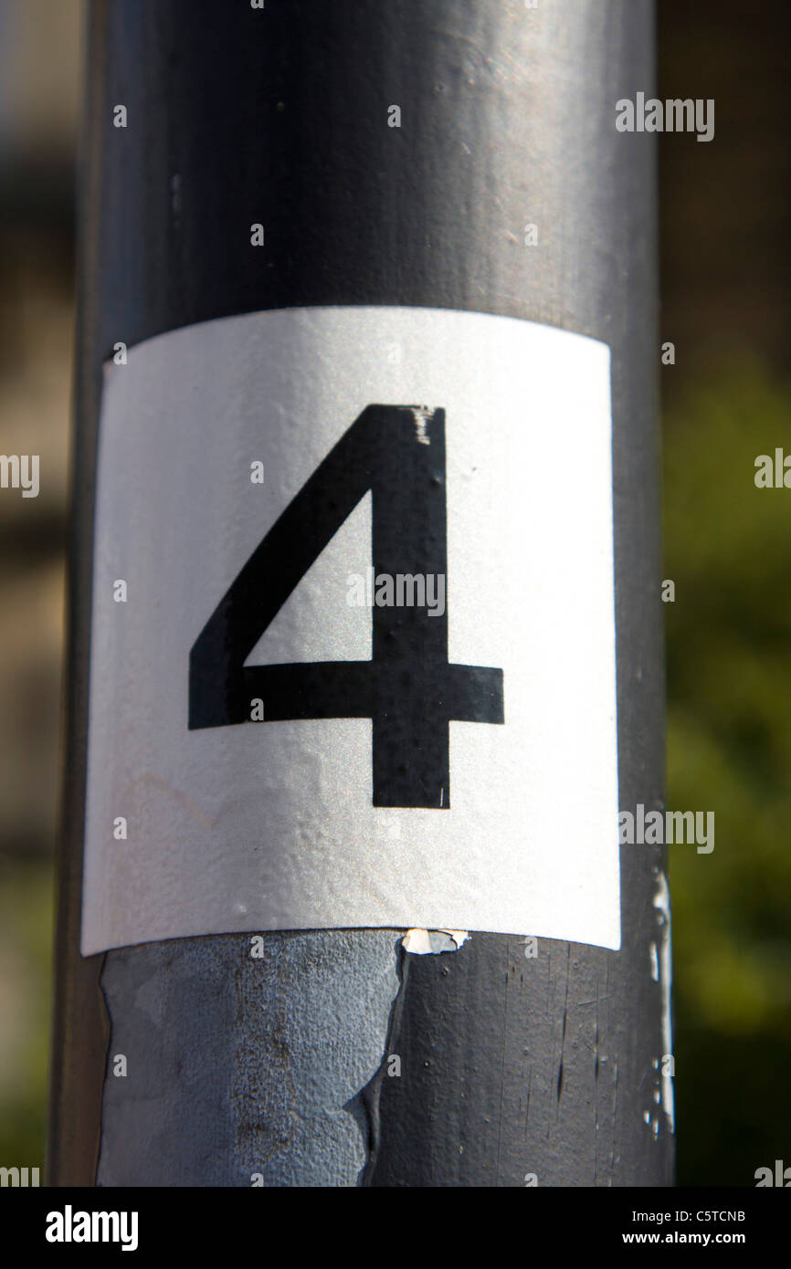 The Number 04 is Written in White with a Black Circle Frame Stock