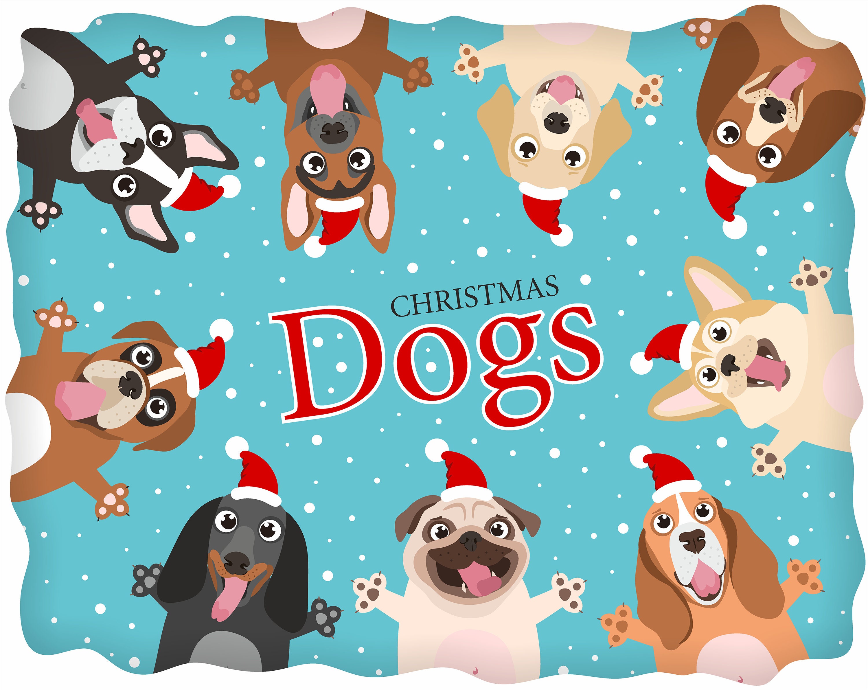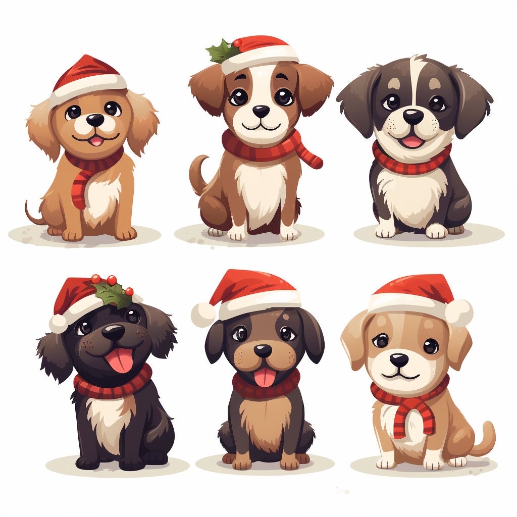 Cartoon Christmas Dogs Clipart Digital Download Cards Personalized