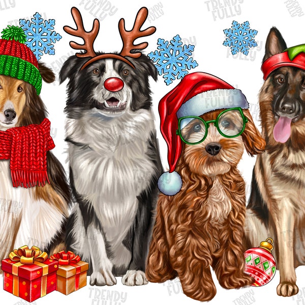 Christmas Dog Breeds Clipart Png Digital Download Sublimation Etsy