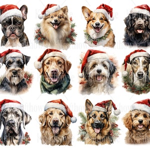 Watercolor Santa Dogs Clipart Christmas PNG Digital Files on Etsy
