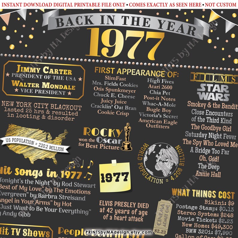 Back in the Year 1977 Poster Board Remember 1977 Sign Etsy