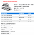 Starter 1 Compatible with 2004 2008 Chevy Aveo 1 6L 4 Cylinder 2005