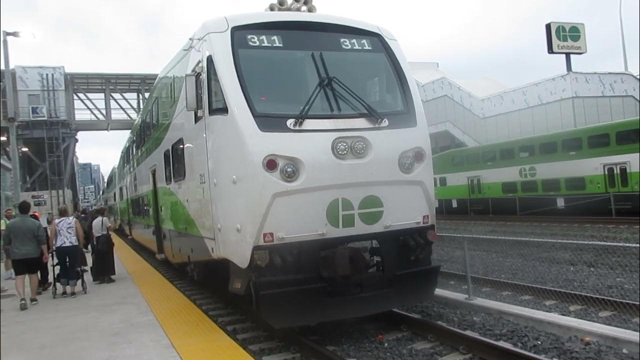 GO Transit Cab Car 311 and MP40PH Locomotive 601 arriving and departing
