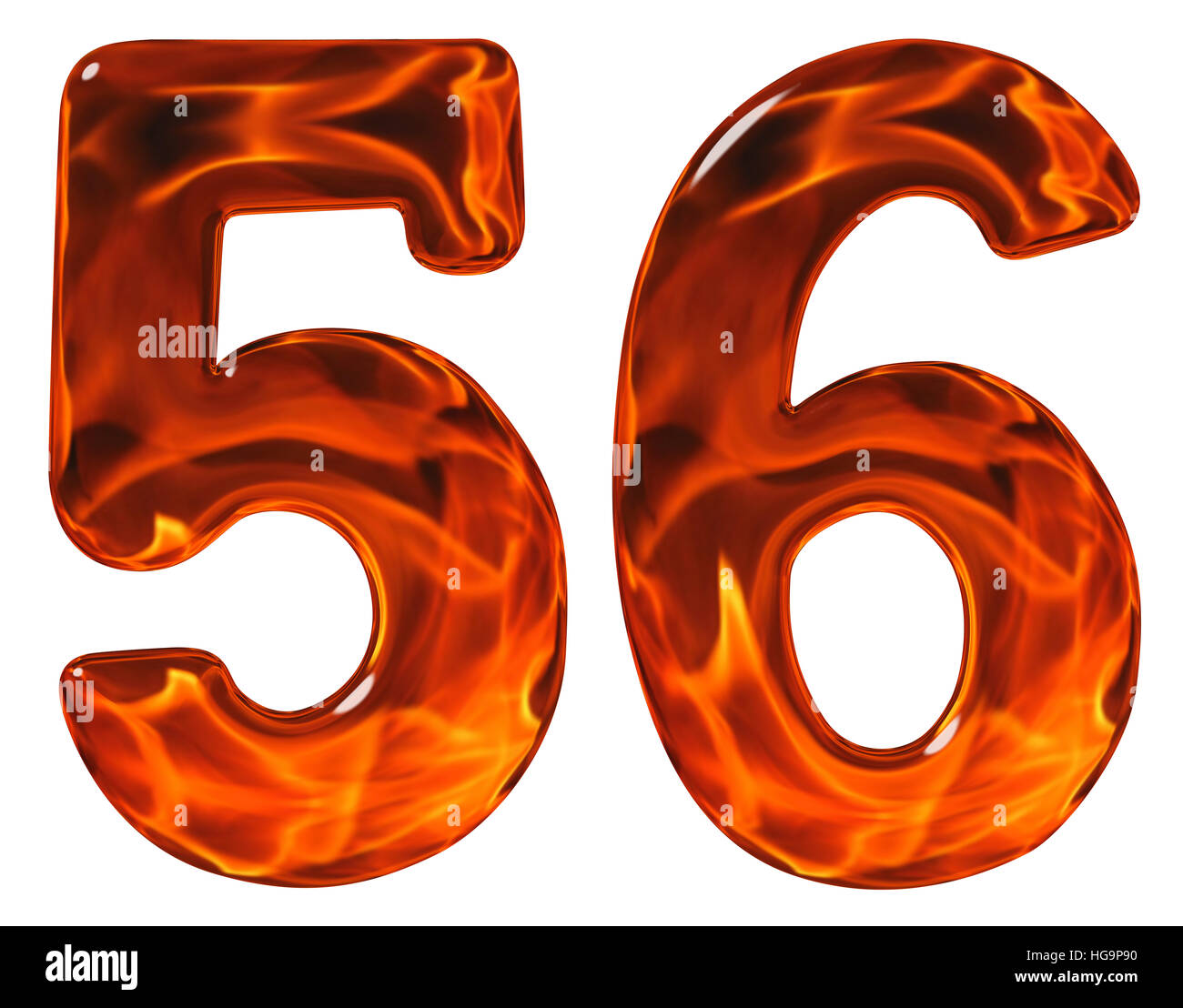 56 fifty six numeral imitation glass and a blazing fire isolated on