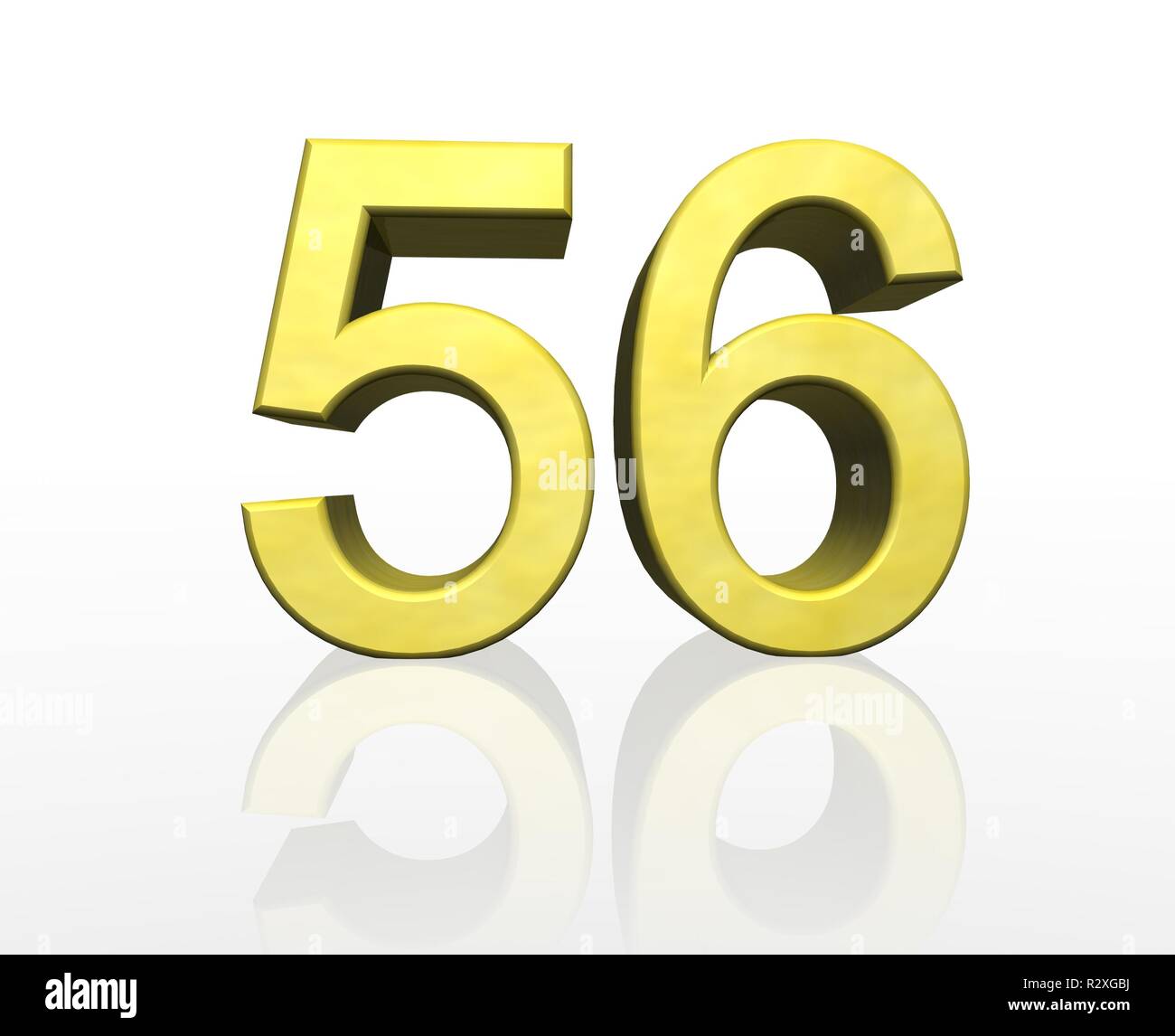 Numeral 56 fifty six isolated on white background 3d render Stock
