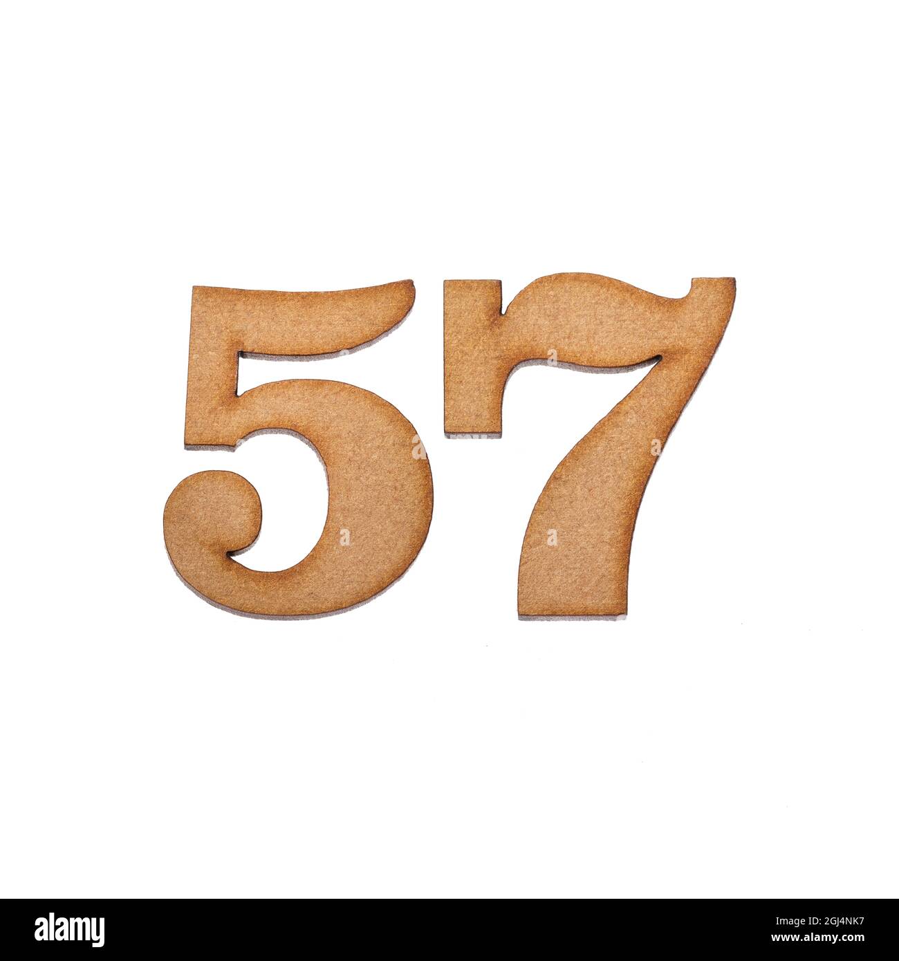 Number 57 in wood isolated on white background Stock Photo Alamy