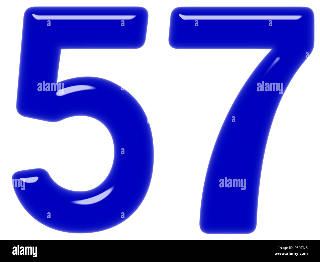 Numeral 57 fifty seven isolated on white background 3d render Stock