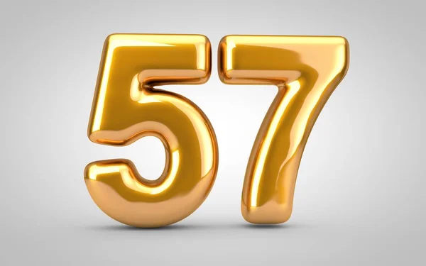 Number 57 fifty seven made of golden inflatable balloons isolated on