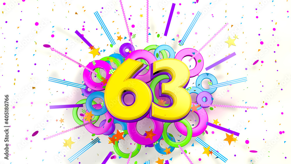 Number 63 for promotion birthday or anniversary over an explosion of