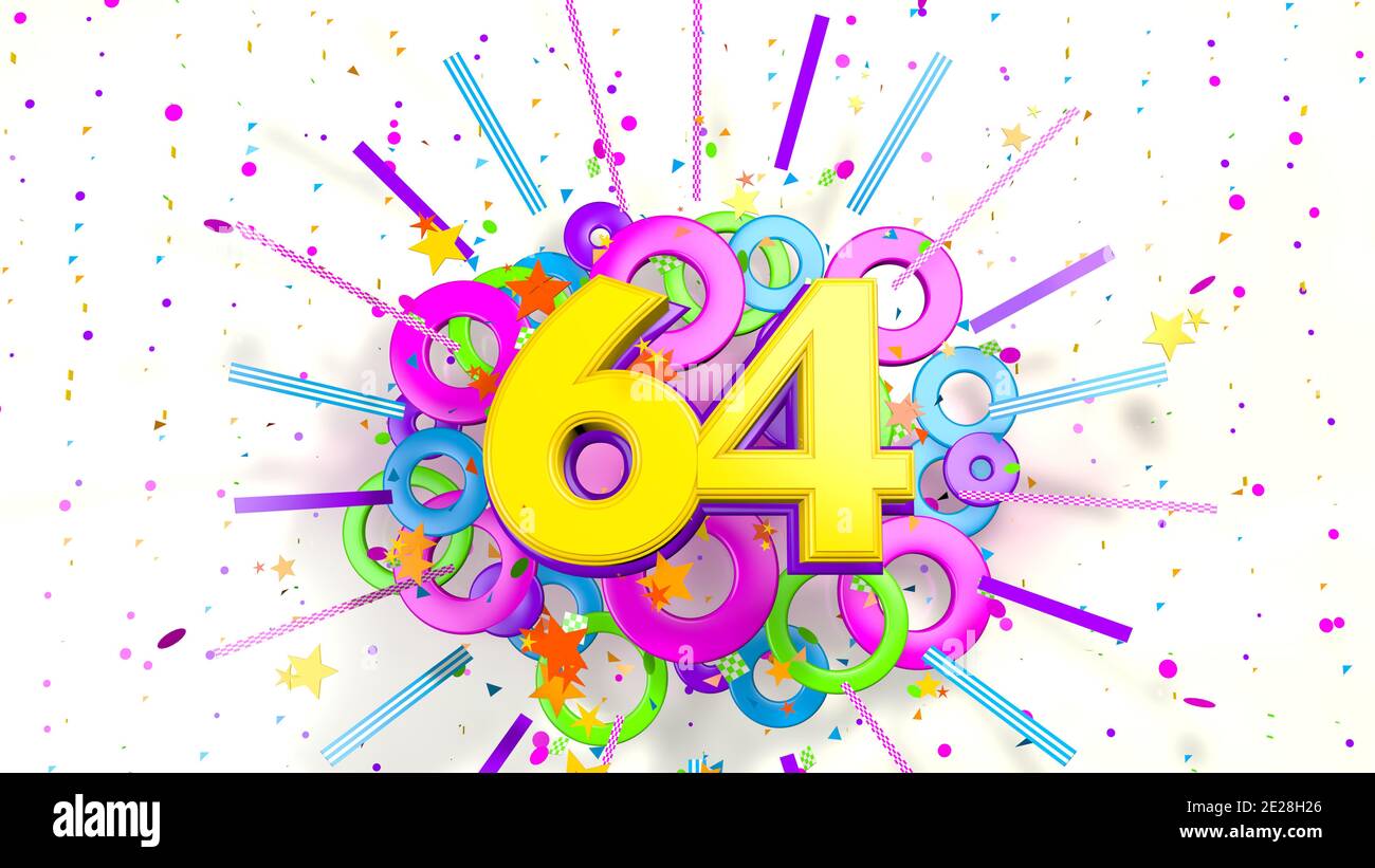 Number 64 for promotion birthday or anniversary on an explosion of