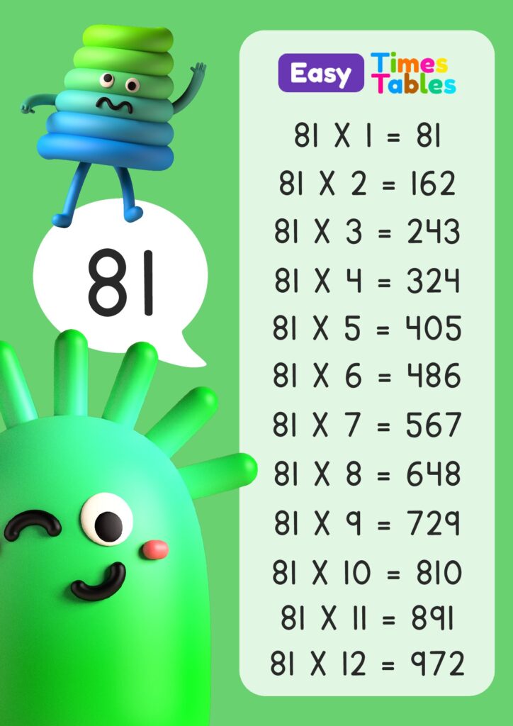 Table of 81 Learn 81 Times Table Multiplication Table of 81