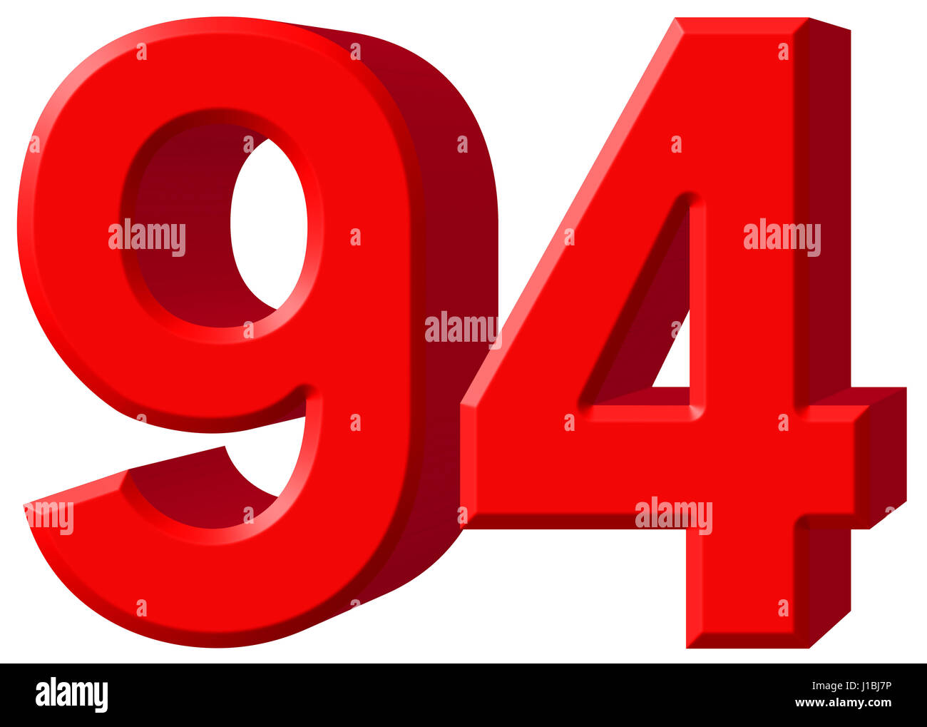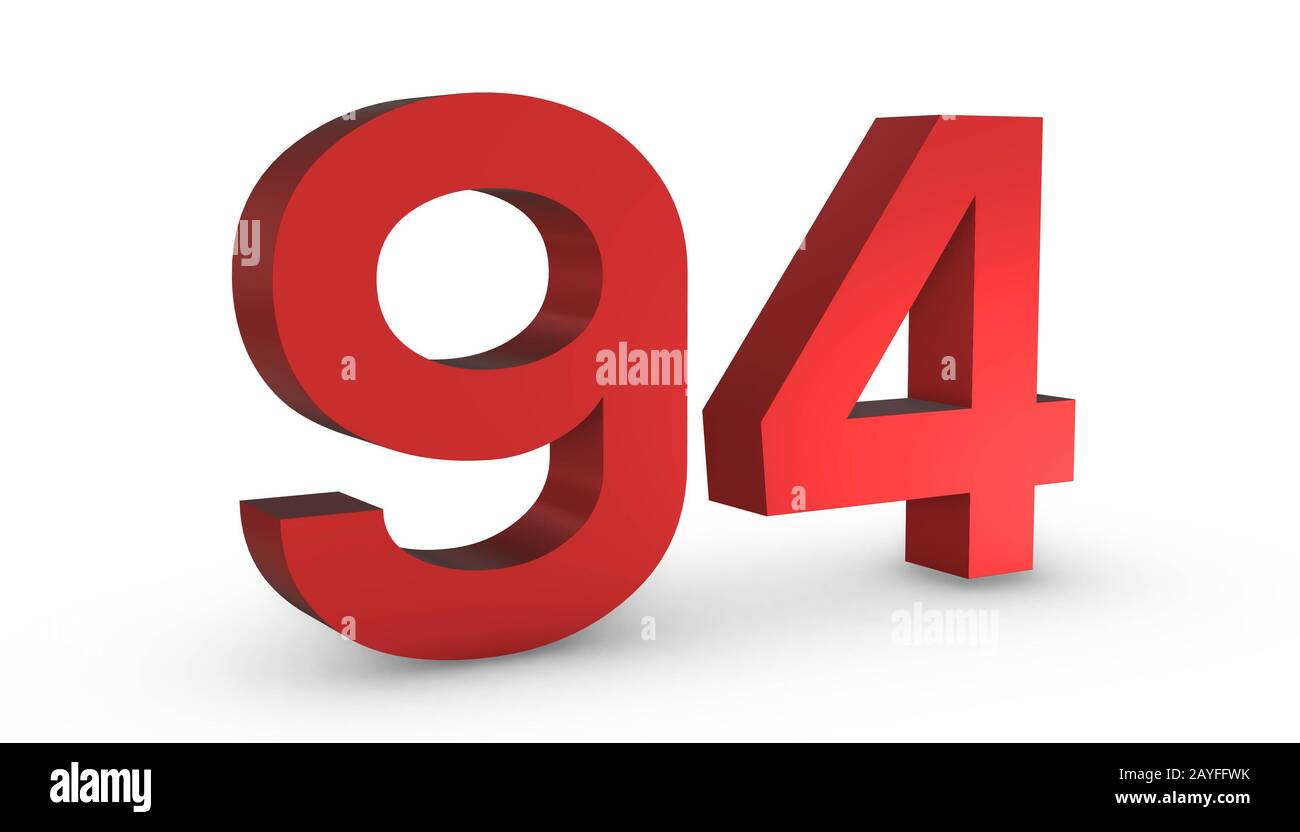 3D Shiny Red Number Ninety Four 94 Isolated on White Background Stock