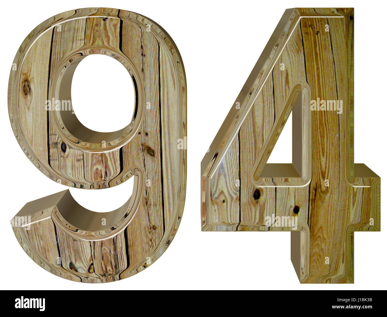 Numeral 94 ninety four isolated on white background 3d render Stock