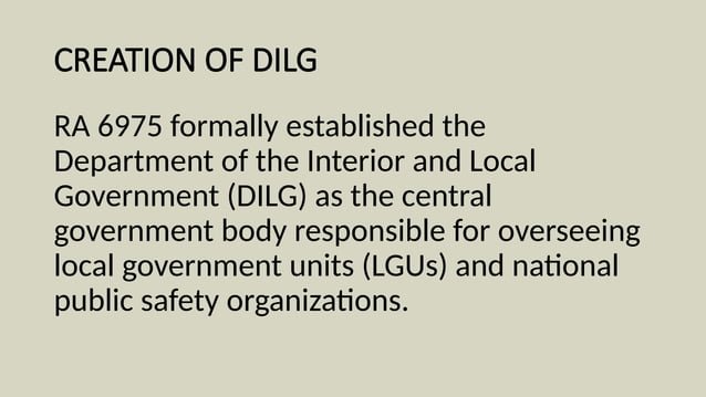 REPUBLIC ACT NO 6975 REPORTING pptx PPTX Political Issues amp policy