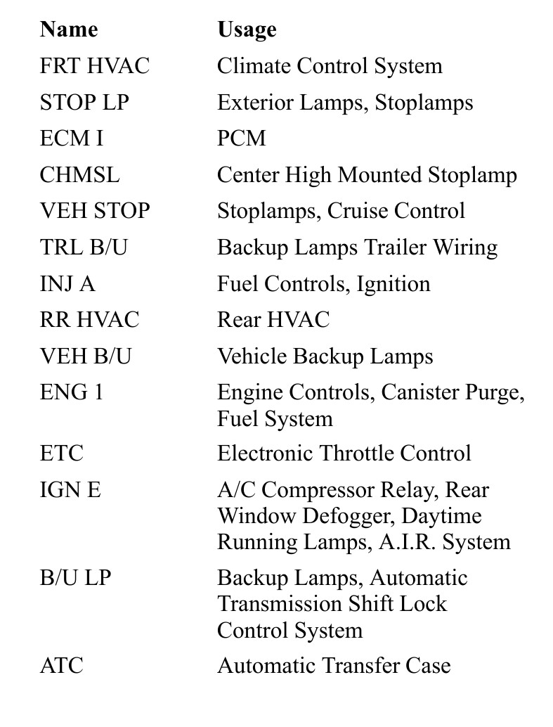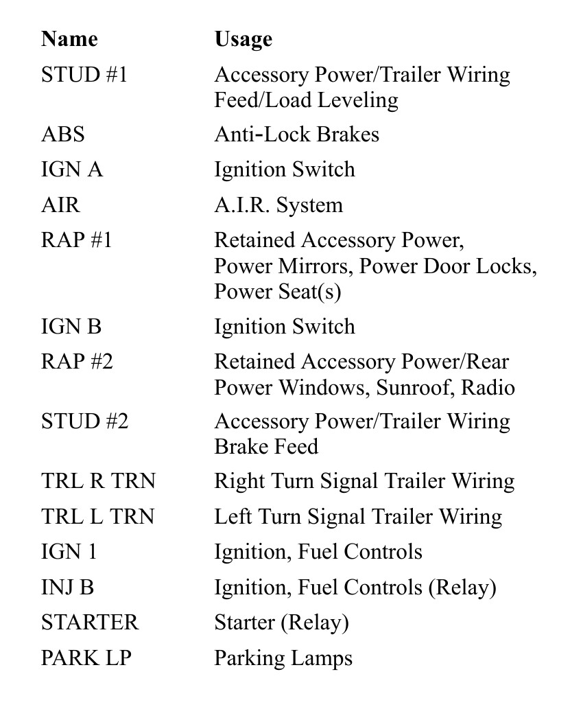2001 Chevrolet Suburban fuse box diagram StartMyCar