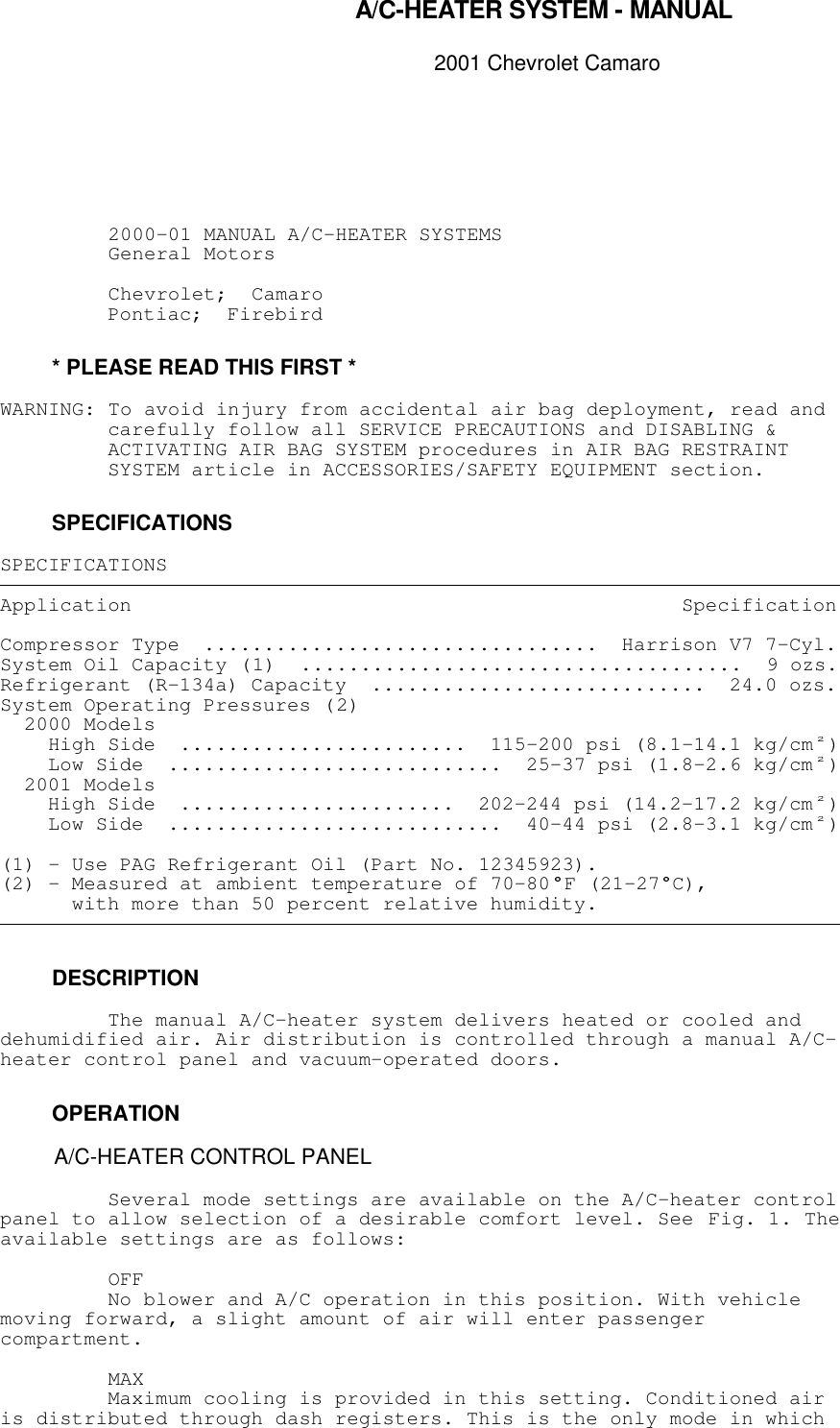Chevrolet Air Conditioner Camaro Users Manual Article Print