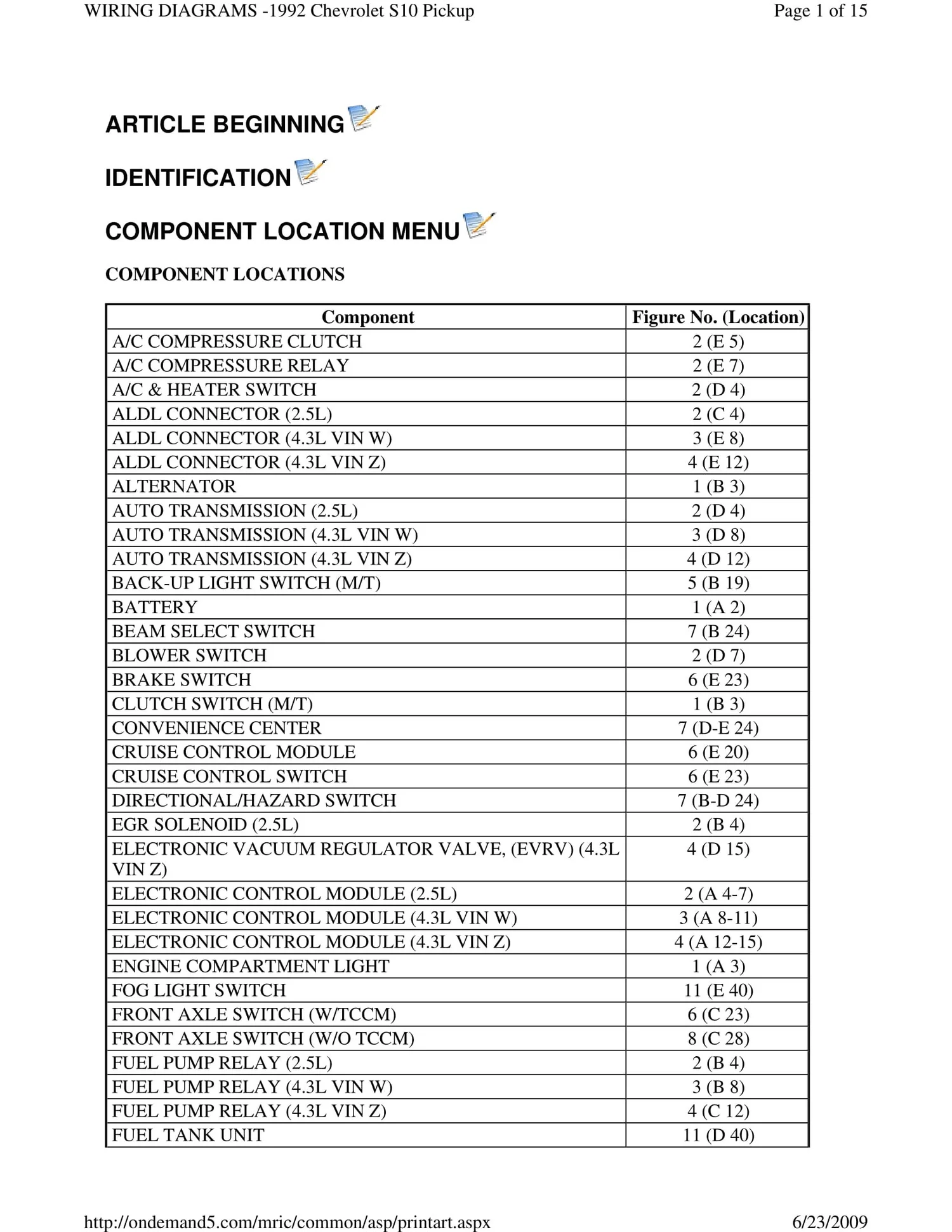 1992 Chevrolet S 10 Pickup Wiring Diagrams S10LIFE